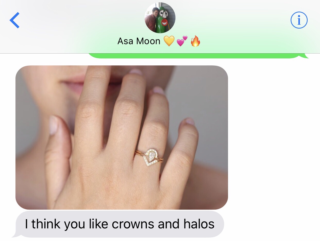 I took pictures of every ring I tried on. And there were a couple I thought were pretty. But I just couldn’t shake the first ring Asa ever showed me.